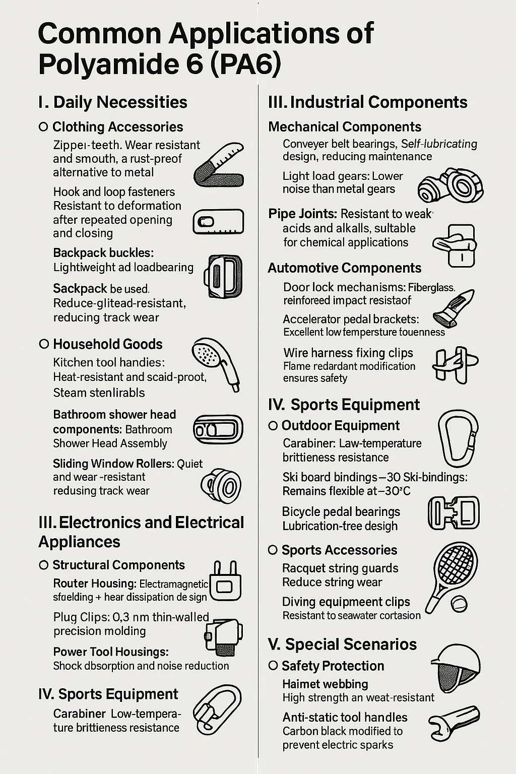 Az alábbiakban bemutatjuk az általános alkalmazásokat poliamid 6 (PA6):