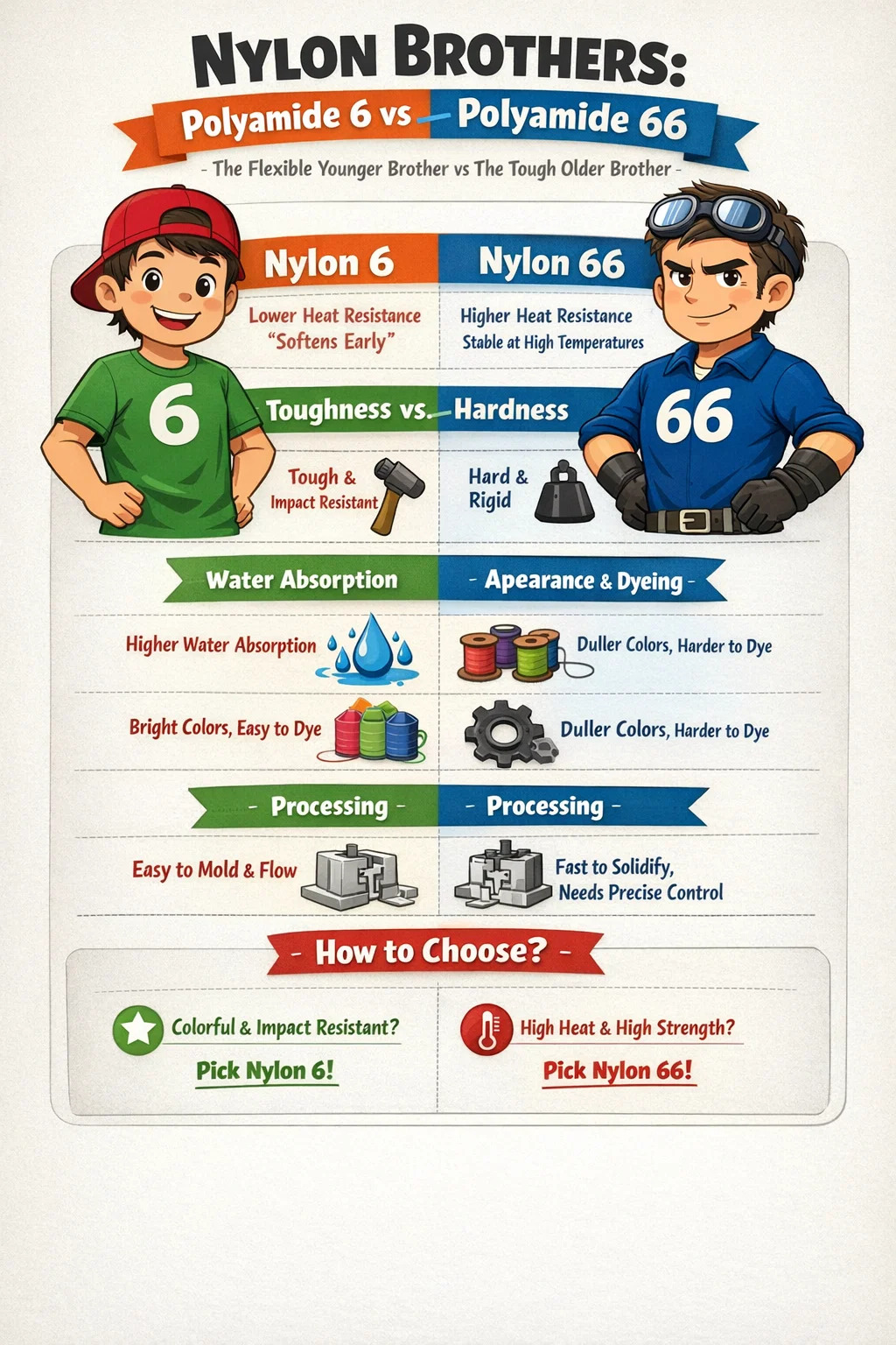 Although Polyamide 6 (Nylon 6) and Polyamide 66 (Nylon 66) sound very similar, in the world of plastics processing and everyday products, they have quite different "personalities" and "strengths."