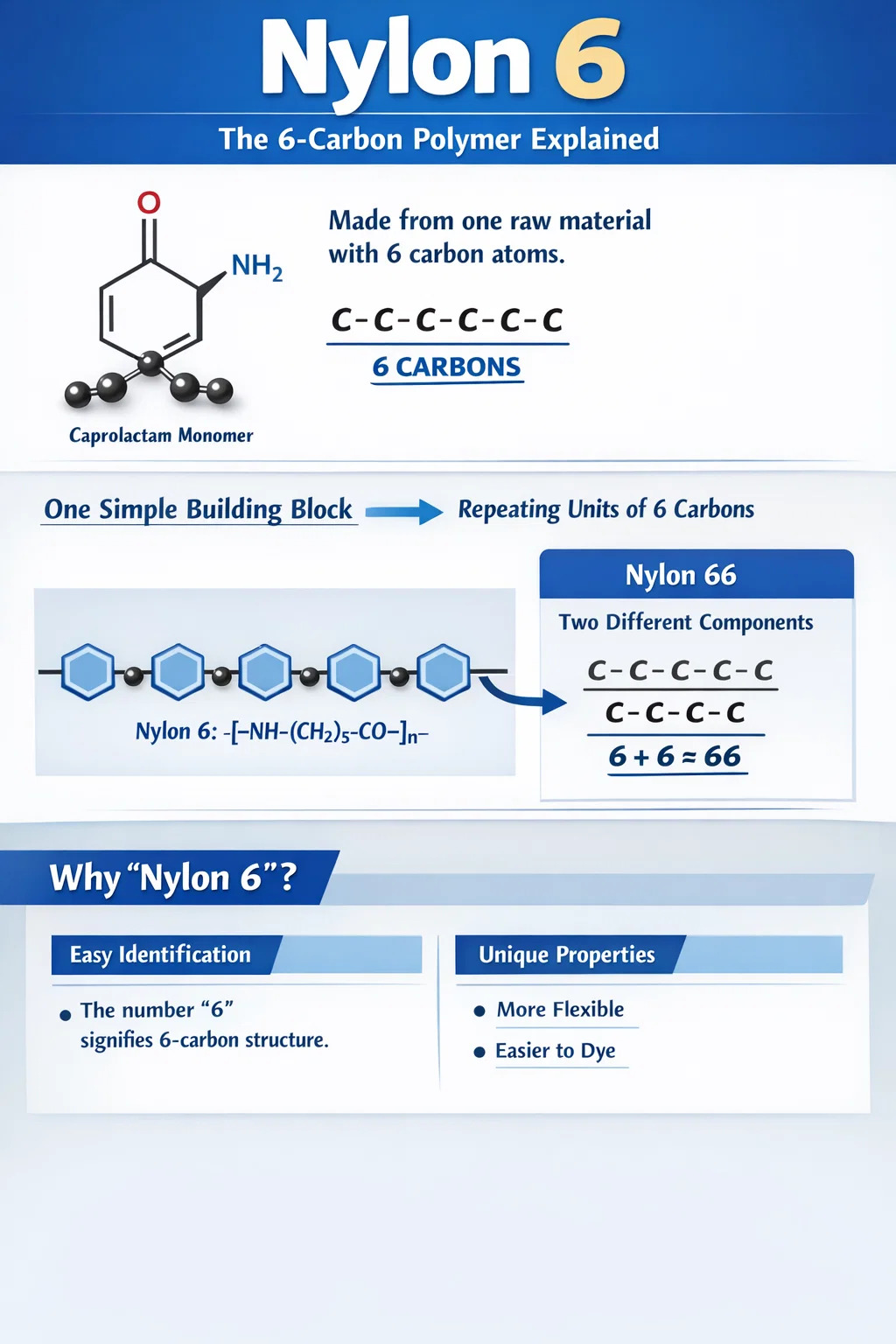 Elnevezési logika: Mivel csak ez a 6 szénatom vesz részt a teljes hosszú lánc felépítésében, a kényelem és a könnyebb memorizálás érdekében a tudósok és a gyártók egyszerűen "Nylon 6-nak" nevezték el.